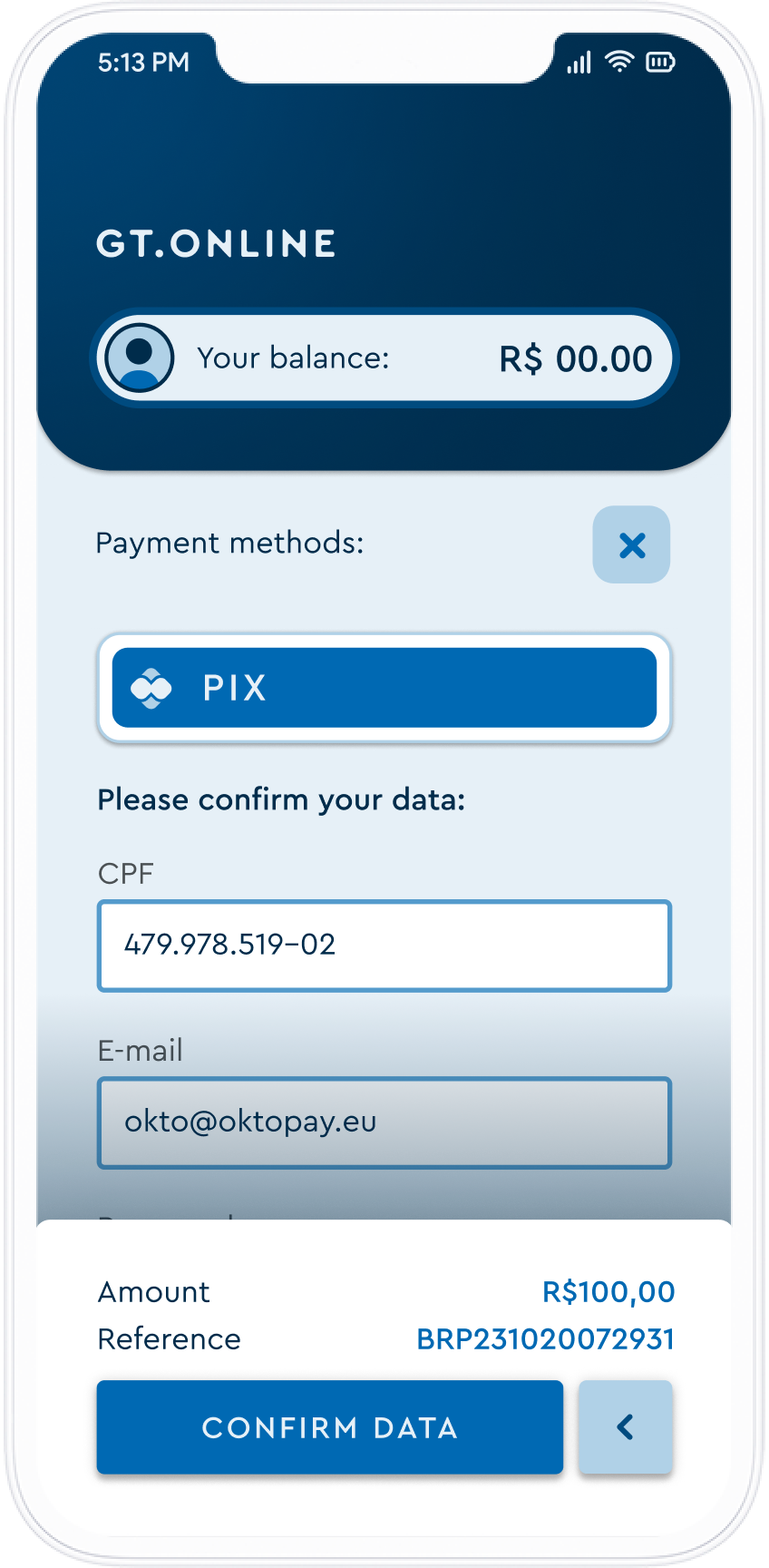 Registering and depositing with OKTO is a breeze. Users simply provide their CPF when depositing their trusted bank account—no redirection from the mobile gaming site is required. OKTO’s background system extracts necessary KYC information from the CPF, allowing seamless player account registration for merchants with minimal user interaction.